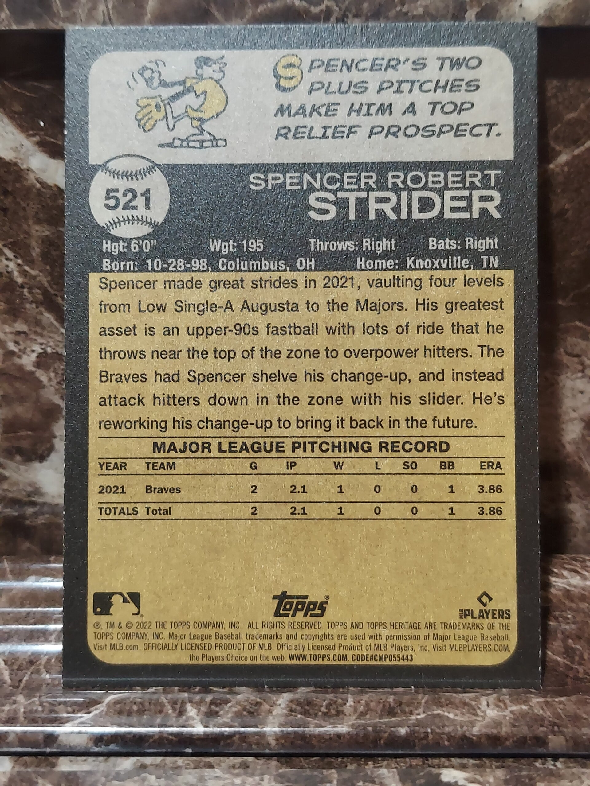 First Class Spencer Strider 2022 Topps Heritage High Number RC #521 Atlanta Braves