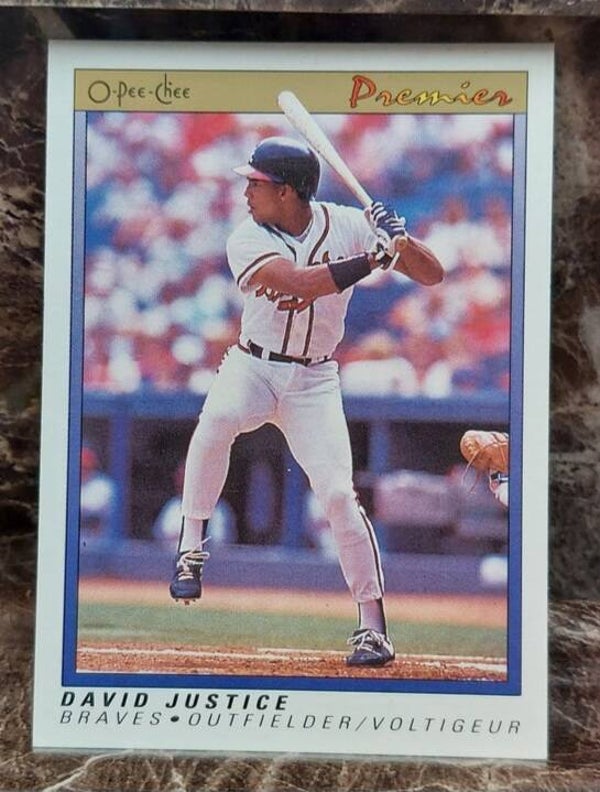 First Class DAVID JUSTICE 1991 O-PEE-CHEE PREMIER BASEBALL CARD # 70