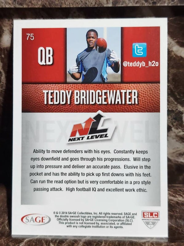 First Class Teddy Bridgewater RC 2014 Sage HIT Next Level Rookie Card # 75 Vikings Football