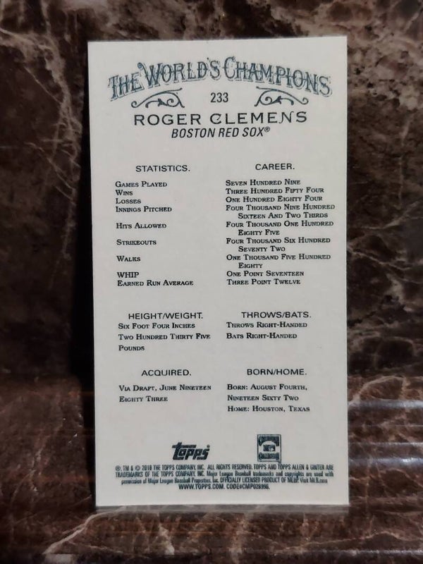 First Class 2018 Topps Allen & Ginter Mini Black #233 Roger Clemens Red Sox