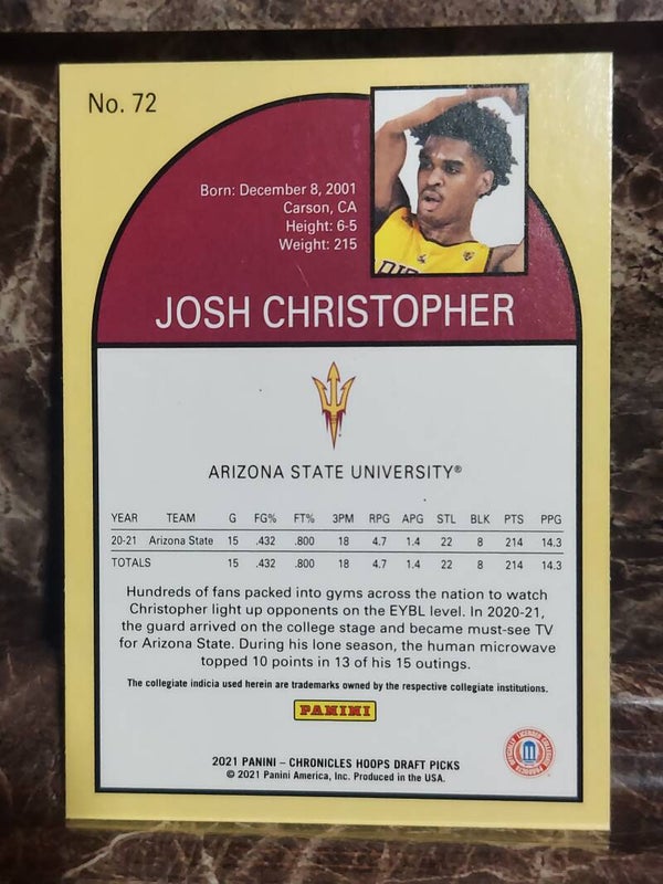 -First Class JOSH CHRISTOPHER 2021-22 Panini Chronicles Draft Picks #72 NBA Hoops Rookie RC