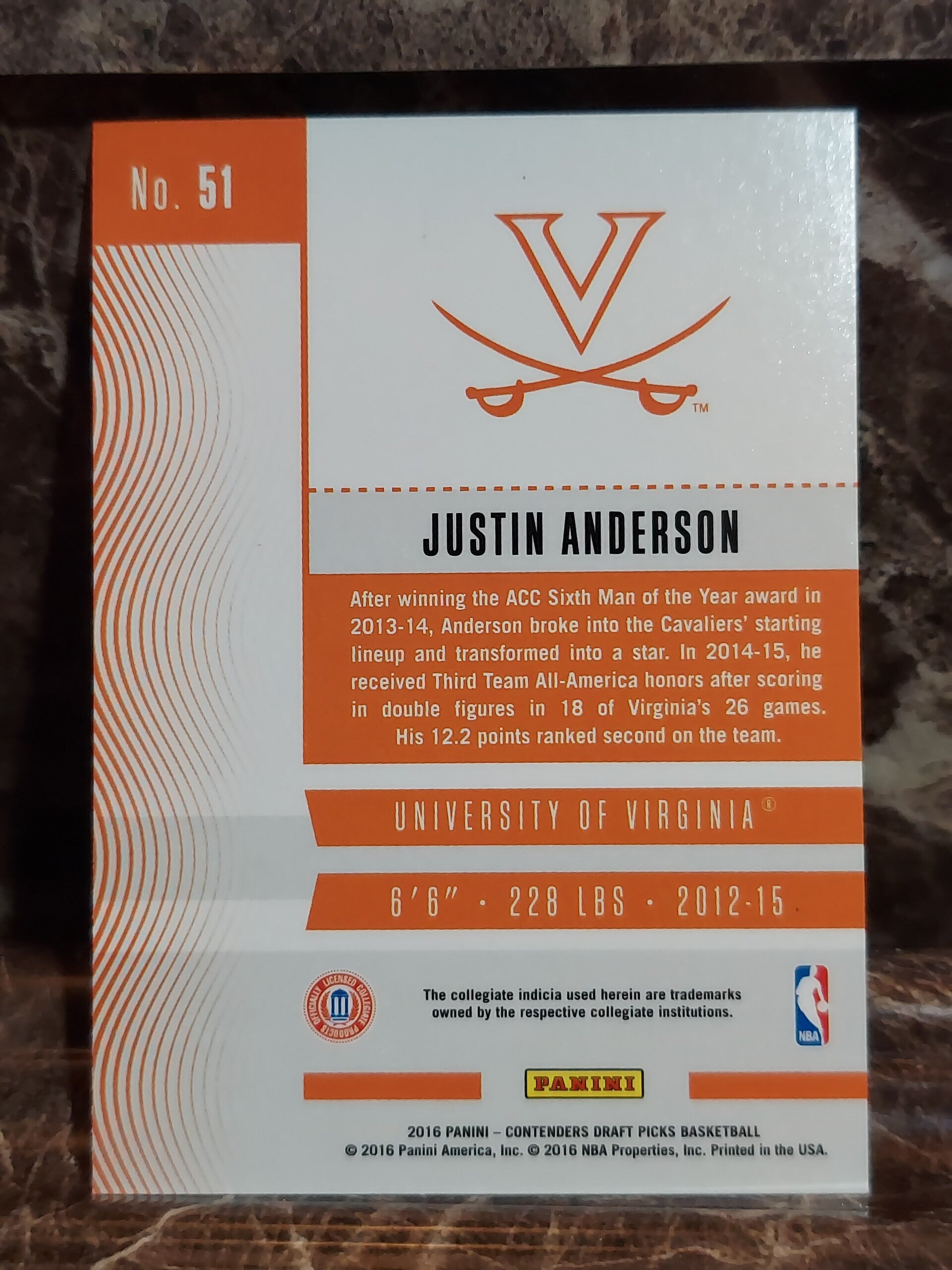 -First Class 2016-17 PANINI CONTENDERS DRAFT PICKS #51 JUSTIN ANDERSON SEASON TICKET