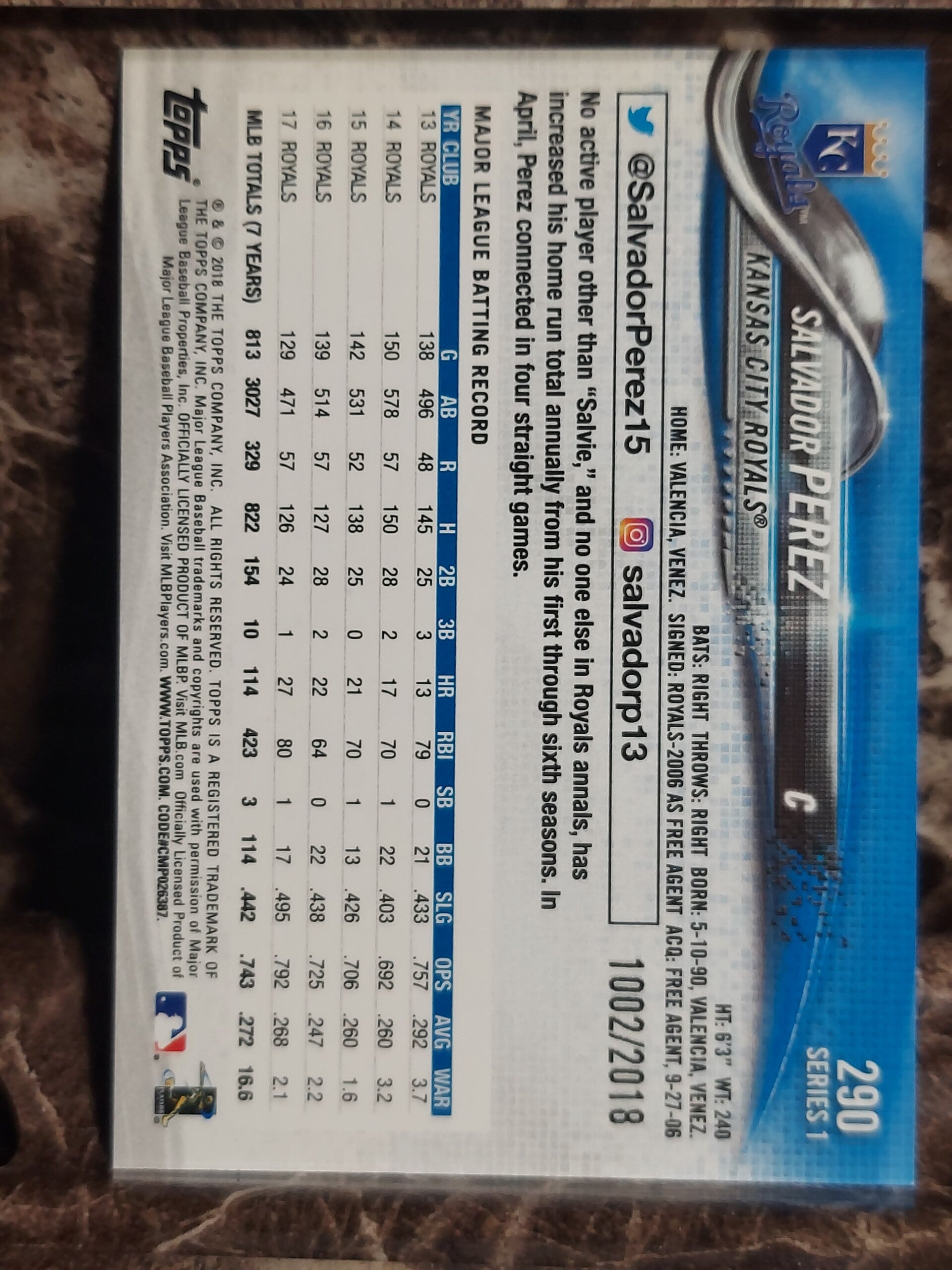 First Class SALVADOR PEREZ 2018 TOPPS Gold Card #290A KANSAS CITY ROYALS