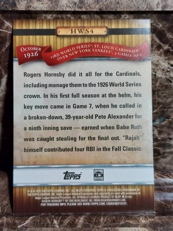 First Class 2010 TOPPS HISTORY OF THE WORLD SERIES ROGERS HORNSBY ST. LOUIS CARDINALS #HWS4