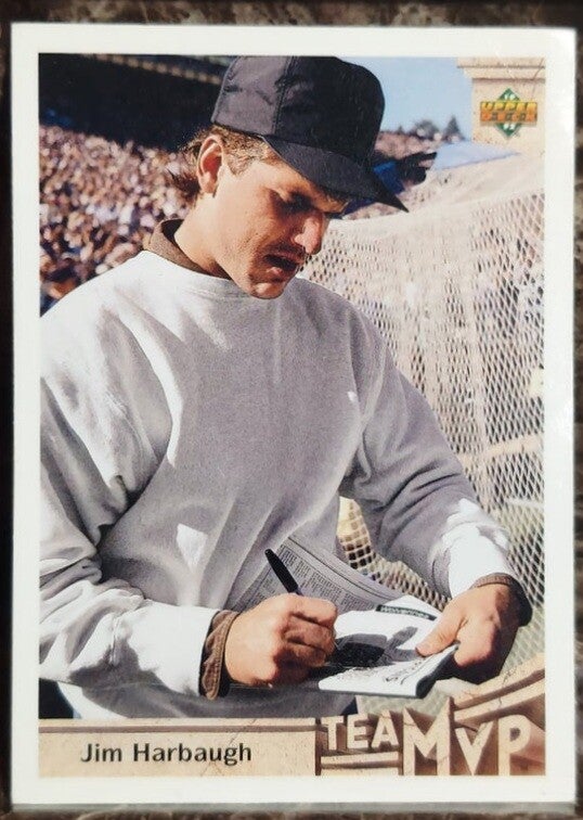 First Class JIM HARBAUGH MICHIGAN BEARS 1992 UPPER DECK TEAM MVP # 351