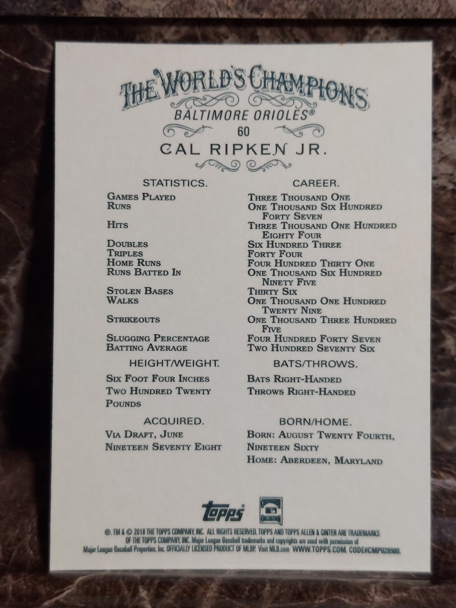 Cal Ripken Jr 2018 Topps Allen and Ginter #60