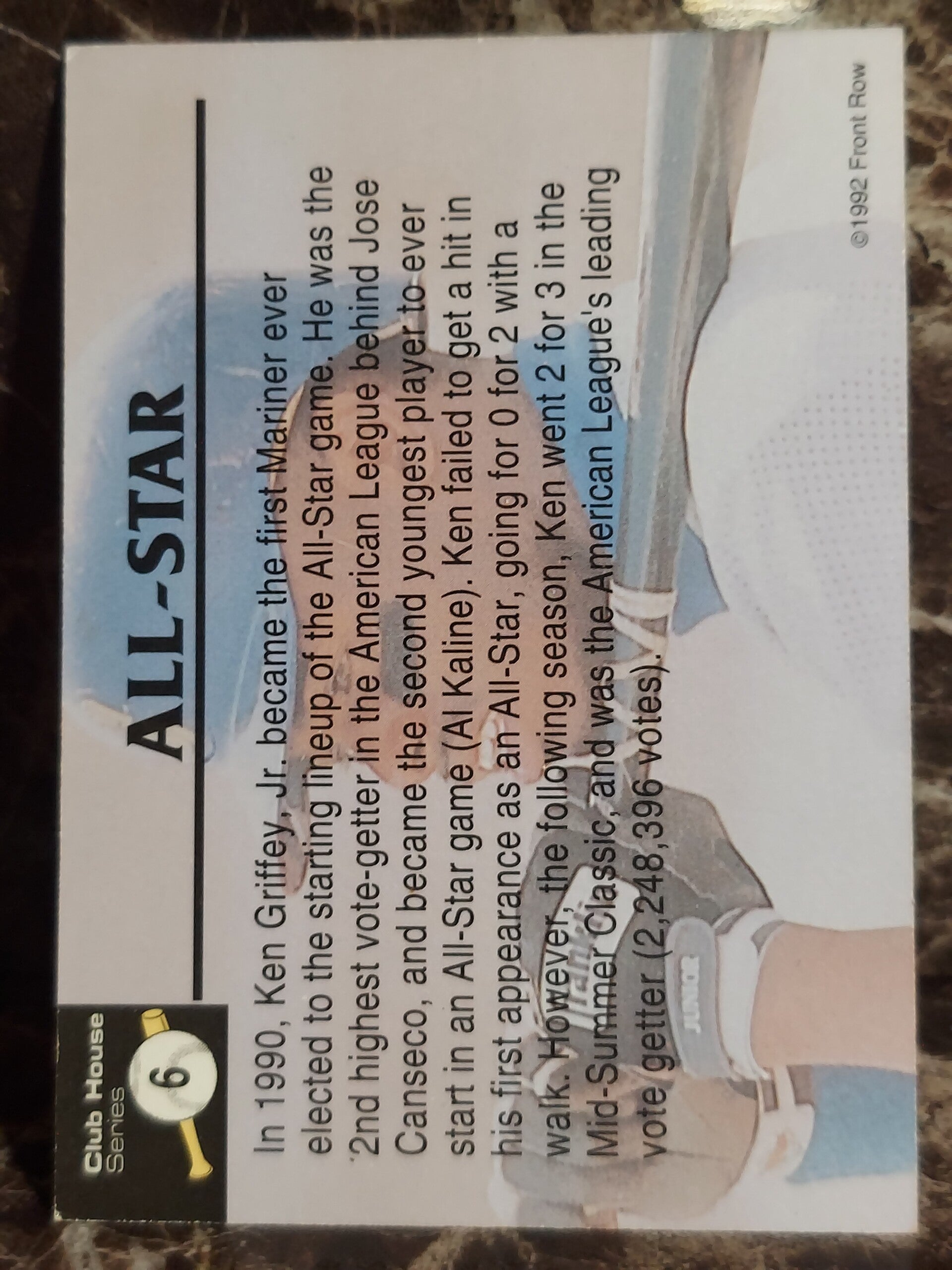 FCC BASEBALL 1992 Club House Series Front Row - Ken Griffey Jr - #6