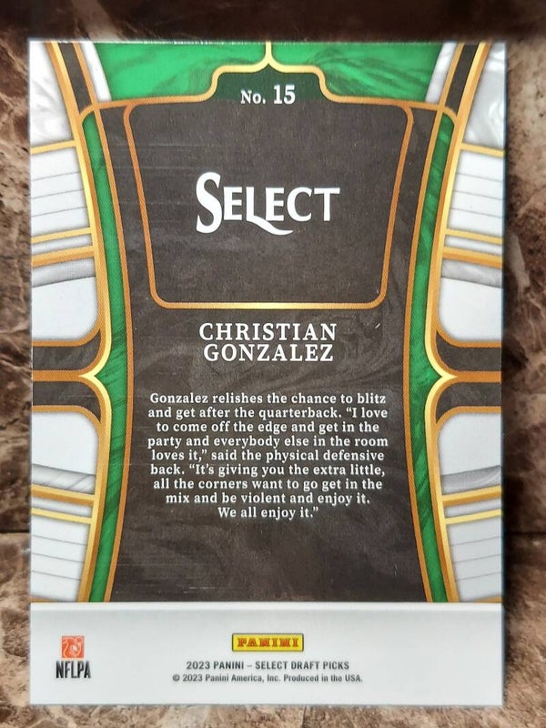FCC FOOTBALL 2023 Panini Select Draft Picks #15 Christian Gonzalez Rookie RC