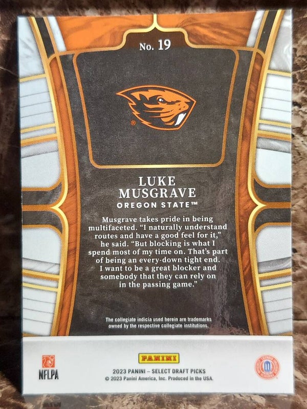 FCC FOOTBALL 2023 Select Draft Picks RC Luke Musgrave RC #19 Packers - Oregon State Beavers