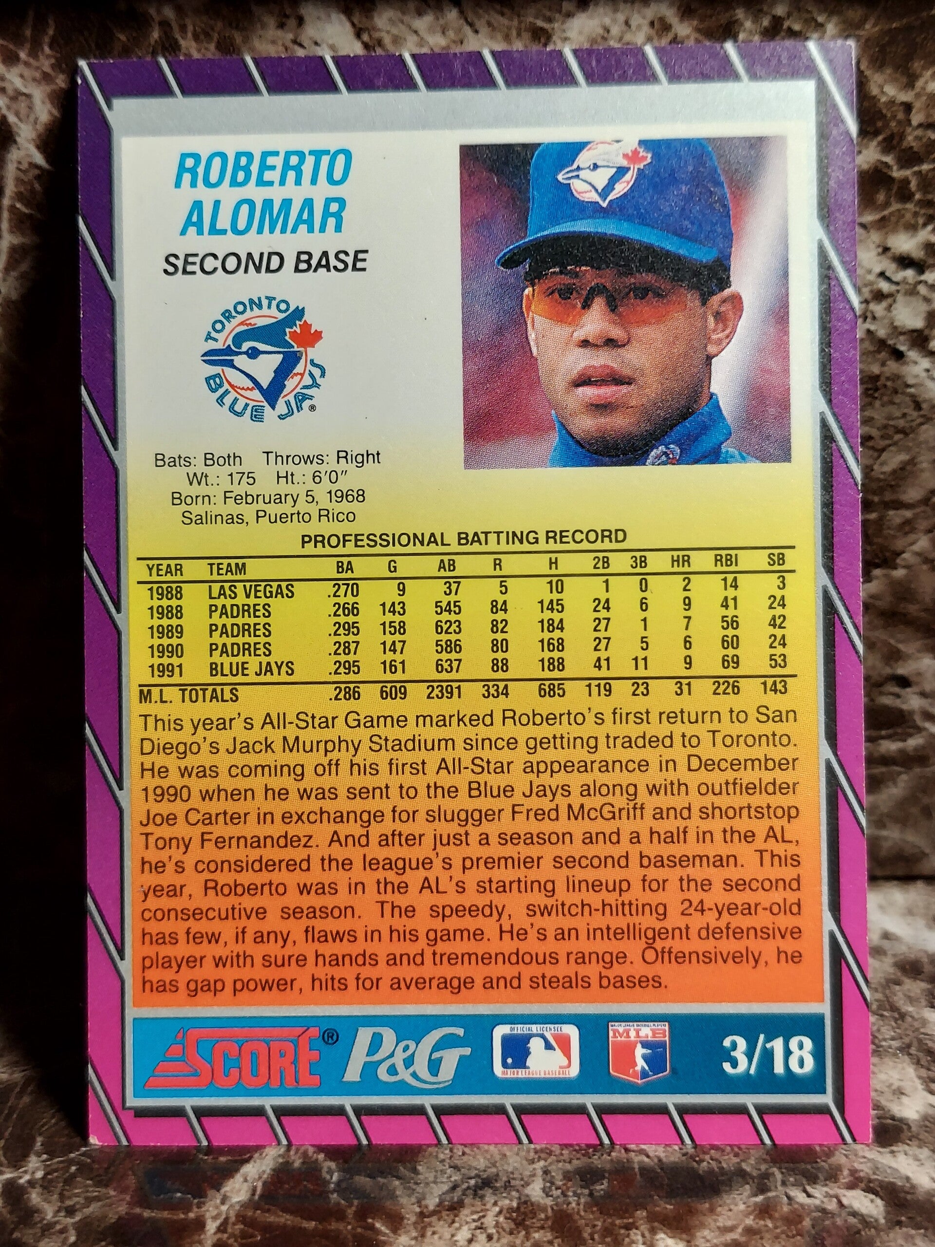FCC BASEBALL ROBERTO ALOMAR 1992 Score Proctor & Gamble All-Stars #3 Toronto Blue Jays