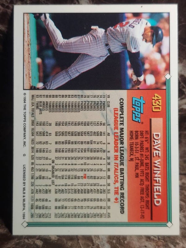 FCC BASEBALL Dave Winfield 1994 Topps #430 Minnesota Twins Baseball Card