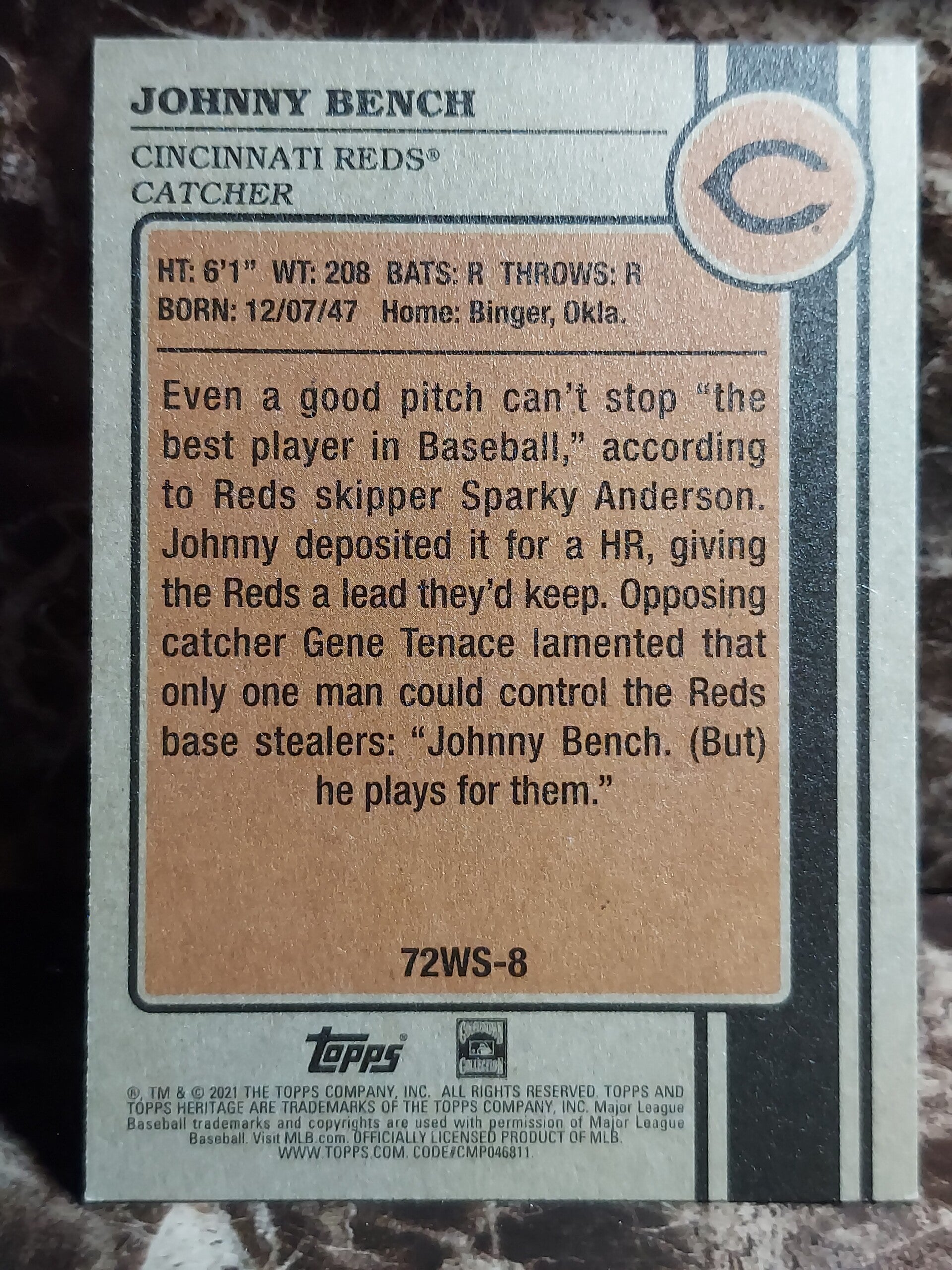 JOHNNY BENCH Topps #72WS-8