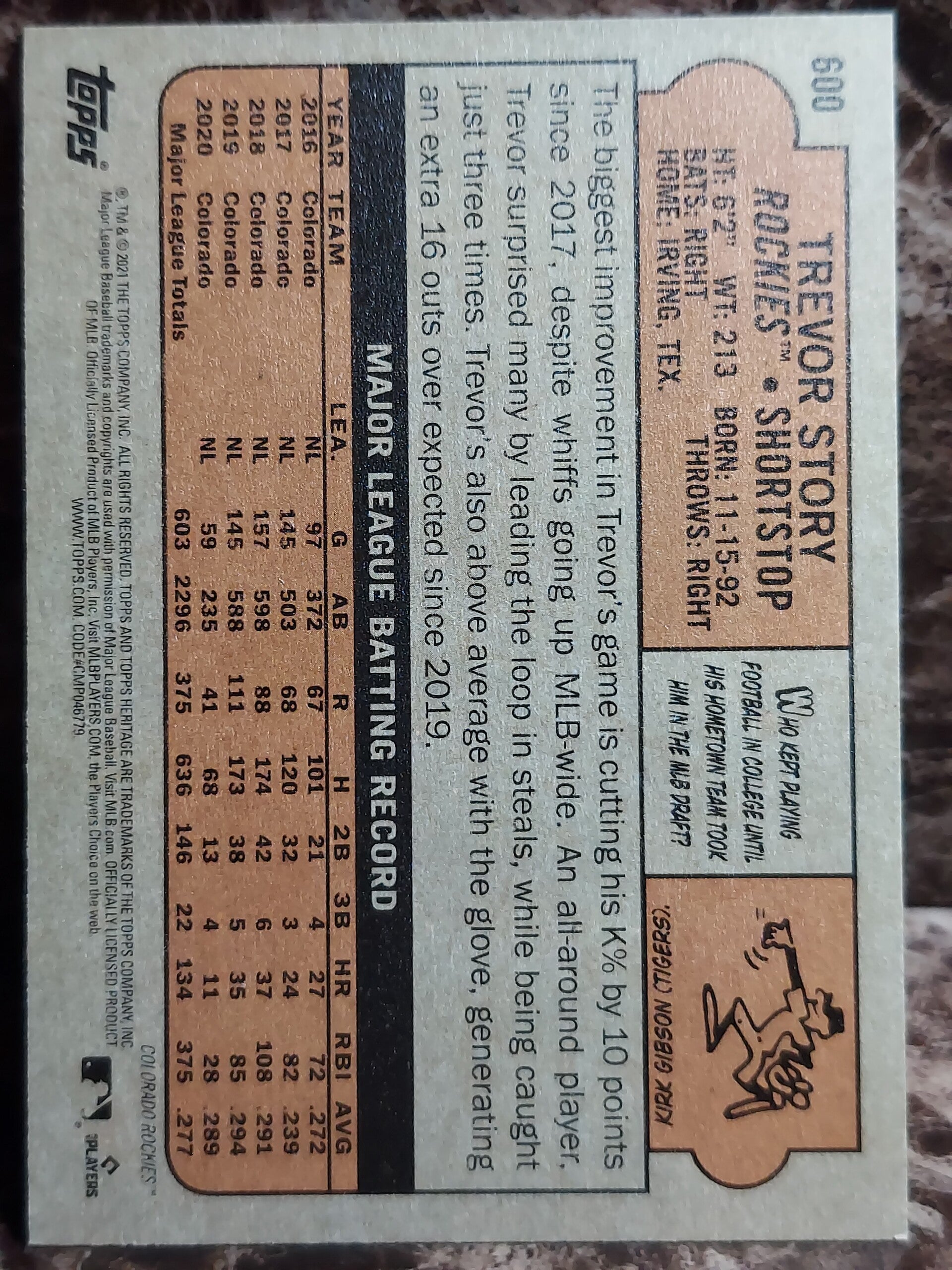Trevor Story 2021 Heritage #600