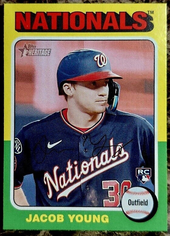FCC BASEBALL Jacob Young 2024 Topps Heritage Rookie Card RC #394 Washington Nationals