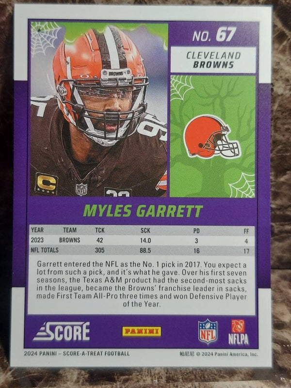 FCC FOOTBALL 2024 Panini Score Halloween Green Bats MYLES GARRETT #67 Cleveland Browns