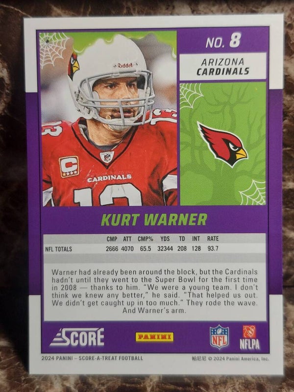 FCC FOOTBALL Kurt Warner 2024 Score-A-Treat Bats Green #8 Arizona Cardinals