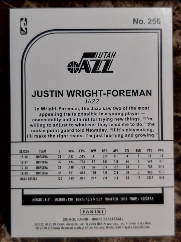FCC BASKETBALL Justin Wright-Foreman 2019-20 NBA Hoops Jazz Card #256