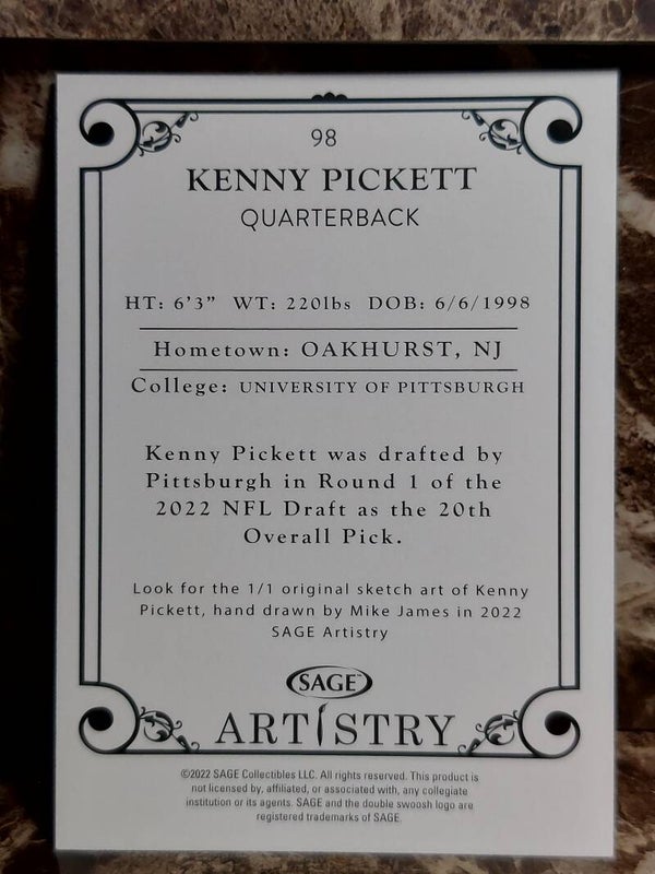 FCC Kenny Pickett 2022 Sage Artistry Black Border Rookie Football Card #98 Steelers