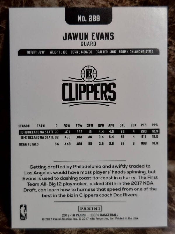 FCC 2017-18 Panini NBA Hoops Blue RC Rookie Jawun Evans Los Angeles Clippers #289