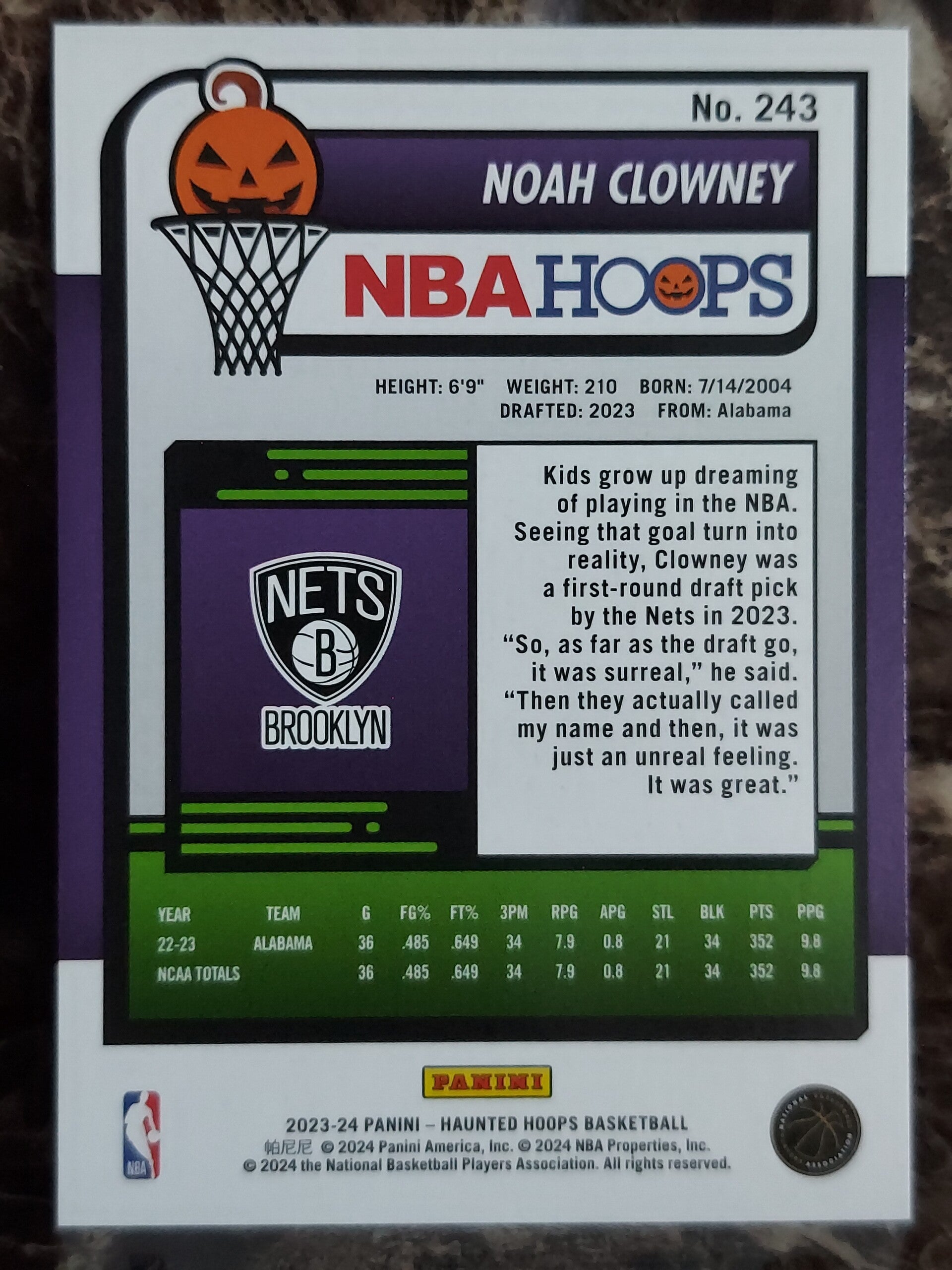 FCC 2023-24 Noah Clowney Panini Haunted Hoops Rookie Card 243 Brooklyn