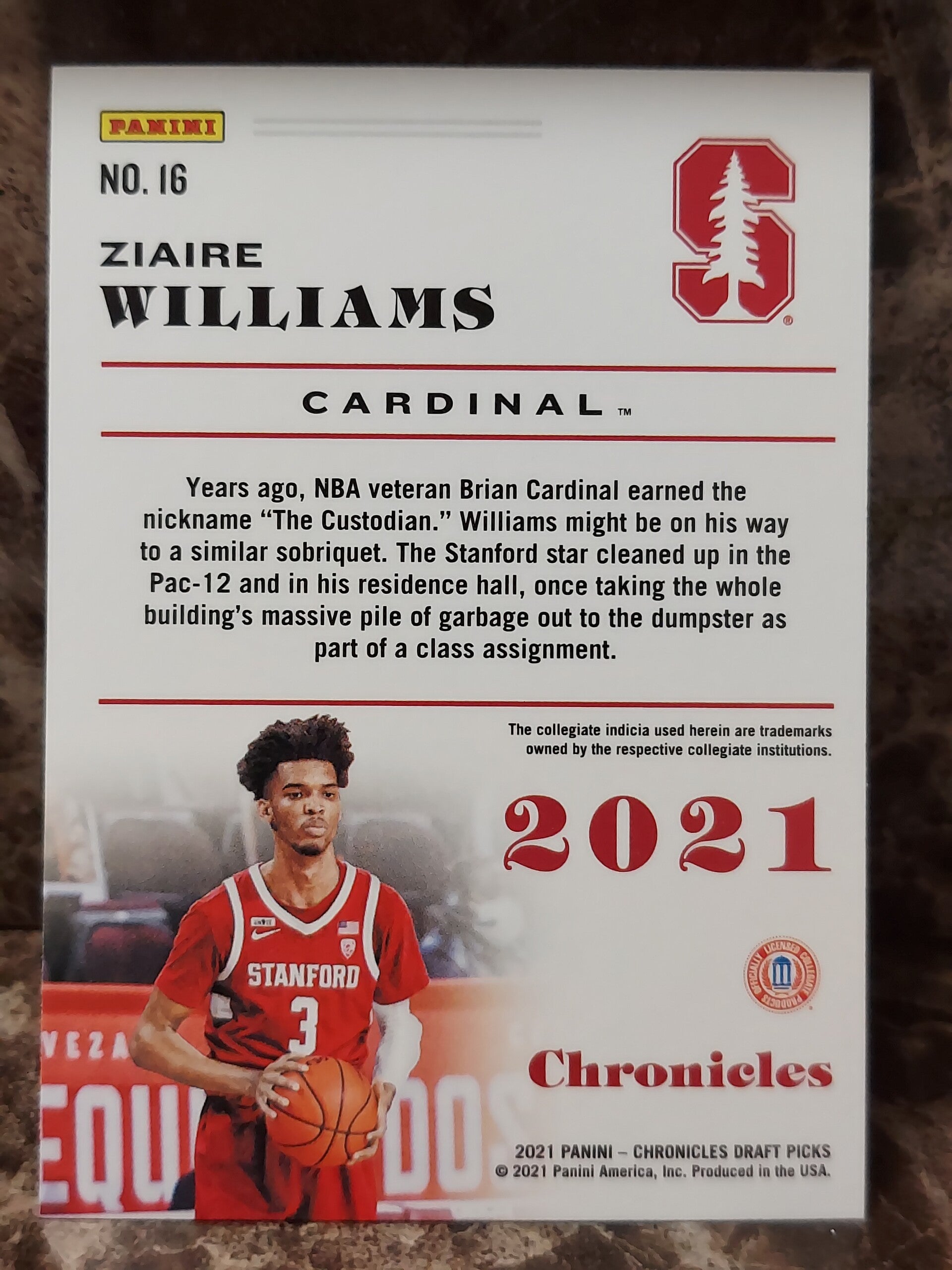 FCC Ziaire Williams 2021-22 Panini Chronicles Rookie Card RC #16 Stanford Cardinal
