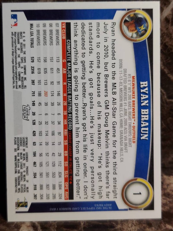 FCC 2011 Topps #1 Ryan Braun Milwaukee Brewers