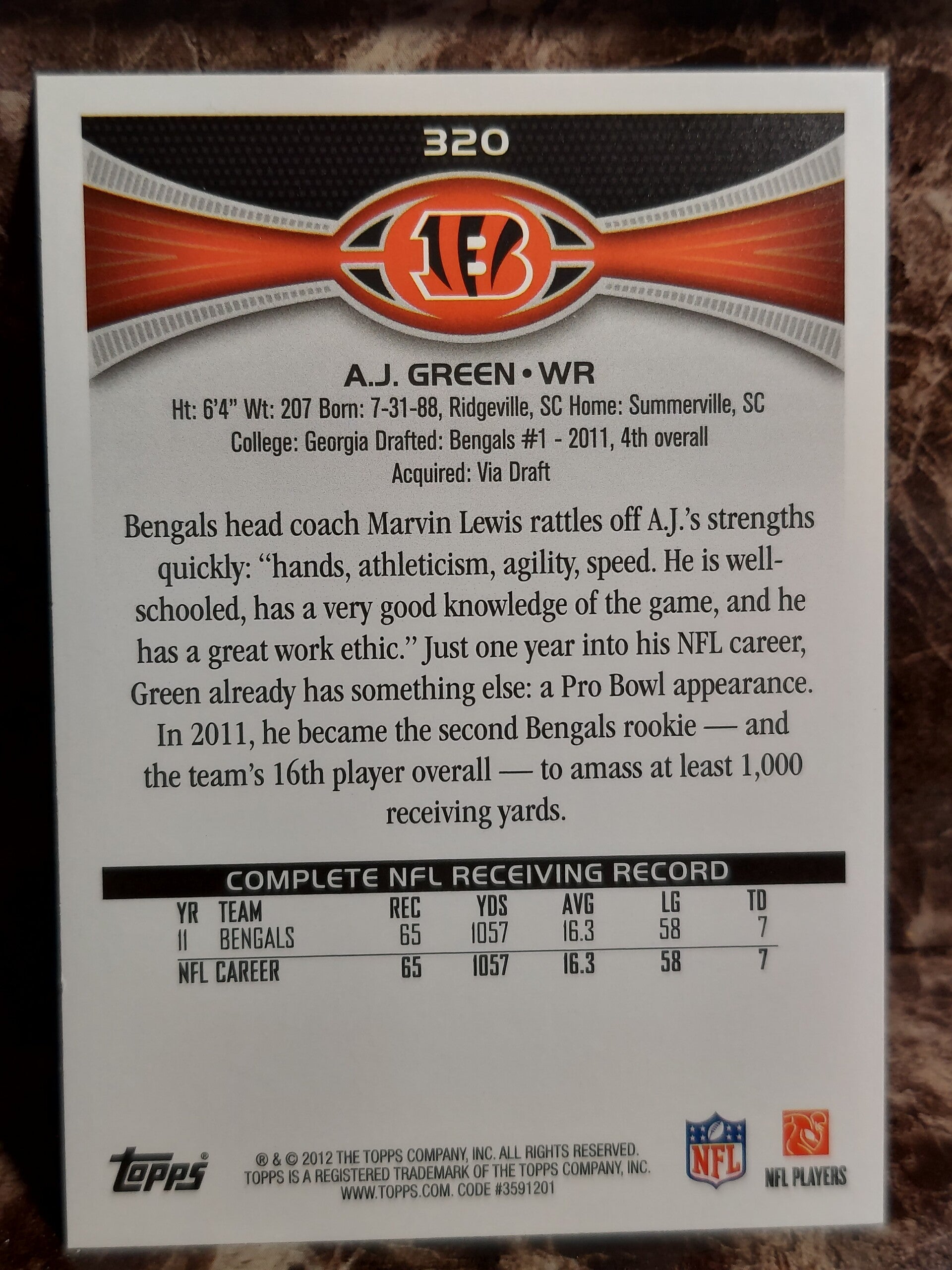 NFL Football Card Seven-time, Pro Bowl Drafted by the Bengals in the first round of the 2011 NFL Draft.Played For Bengals from 2011-2020 and retired from the NFL on February 6, 2023.