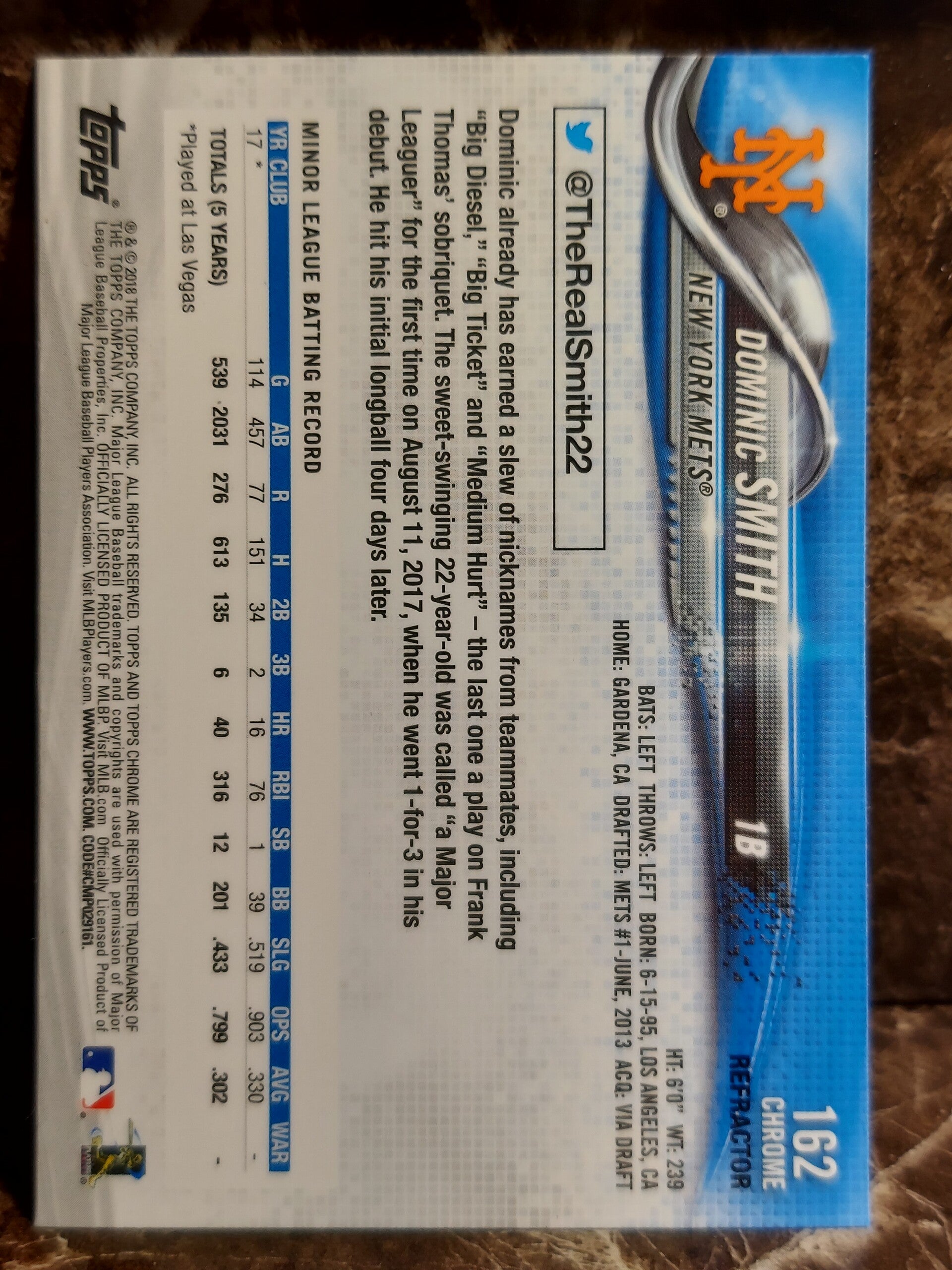 FCC Dominic Smith 2018 Topps Chrome #162 RC