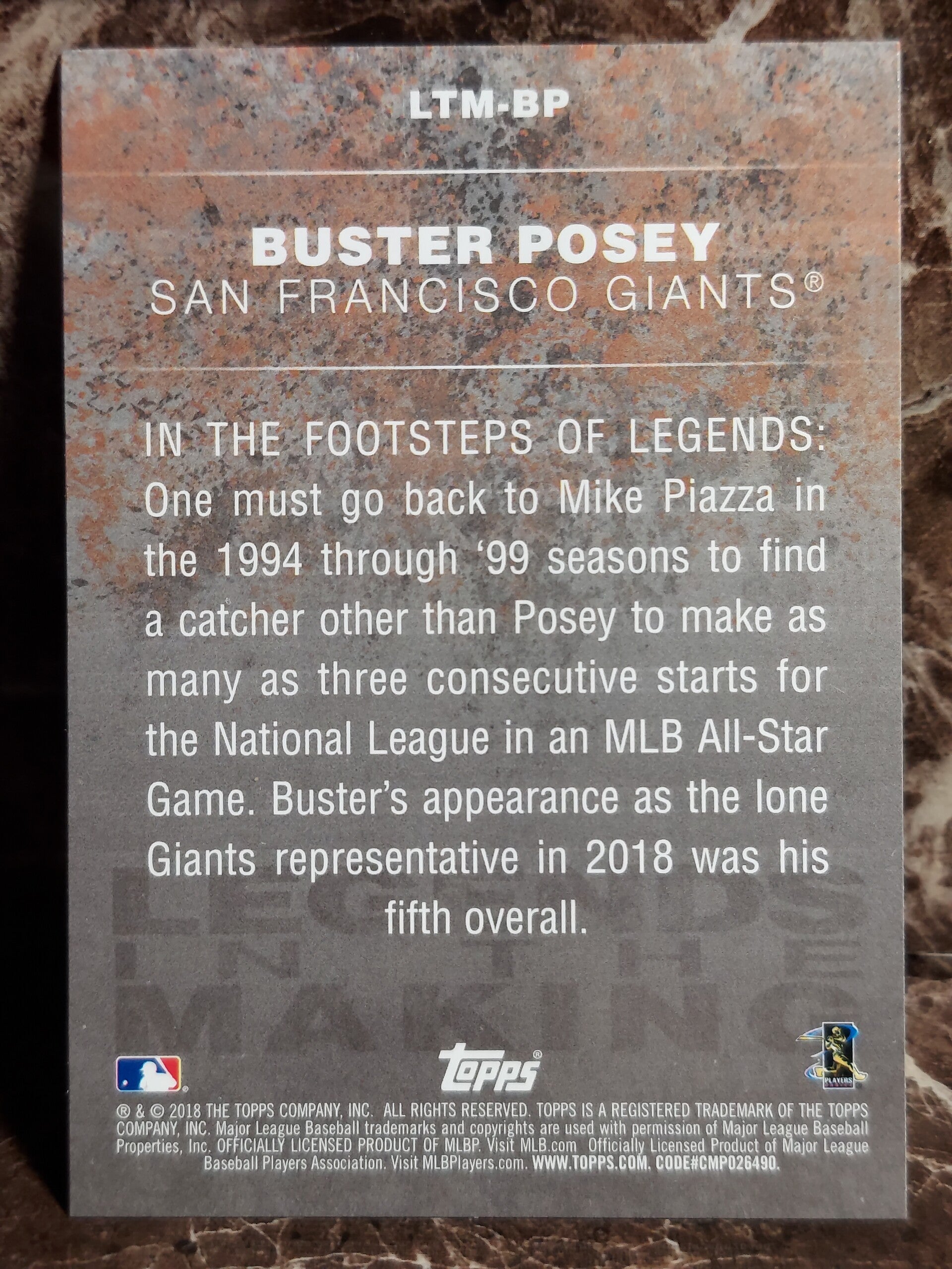 FCC 2018 Topps Buster Posey #LTM-BP Legends in the Making Blue San Francisco