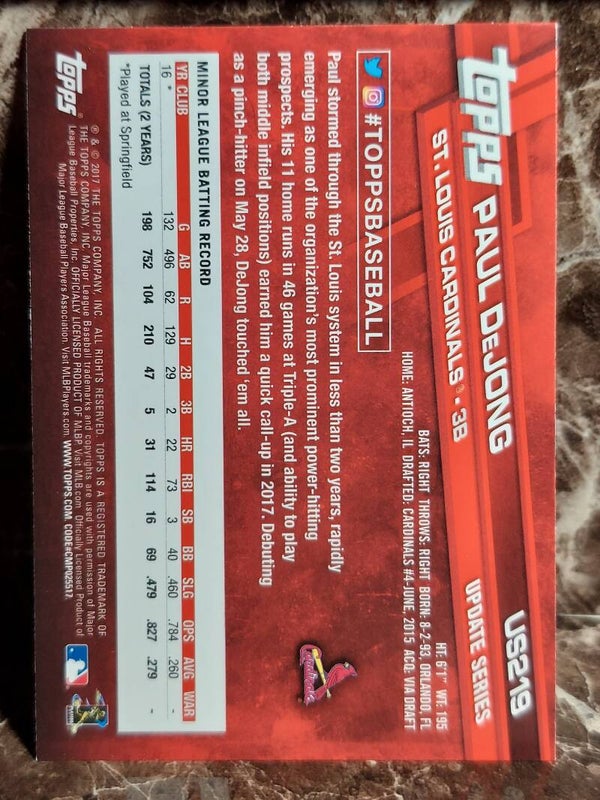 FCC Paul DeJong RC 2017 Topps Update Series Rookie Card # US219