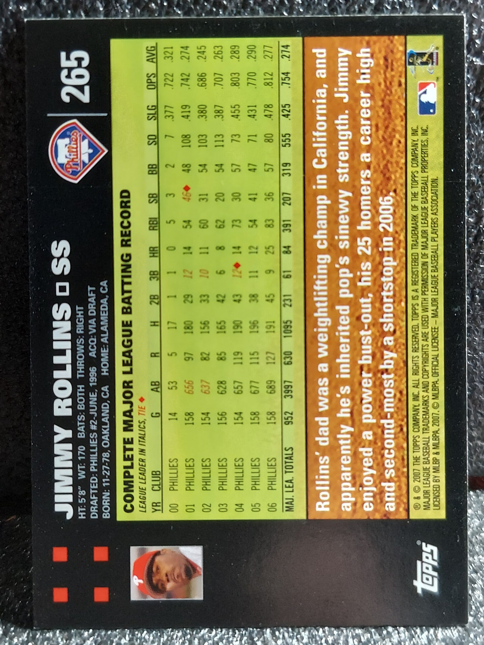 FCC CARD 2007 TOPPS BASEBALL JIMMY ROLLINS CARD No.265