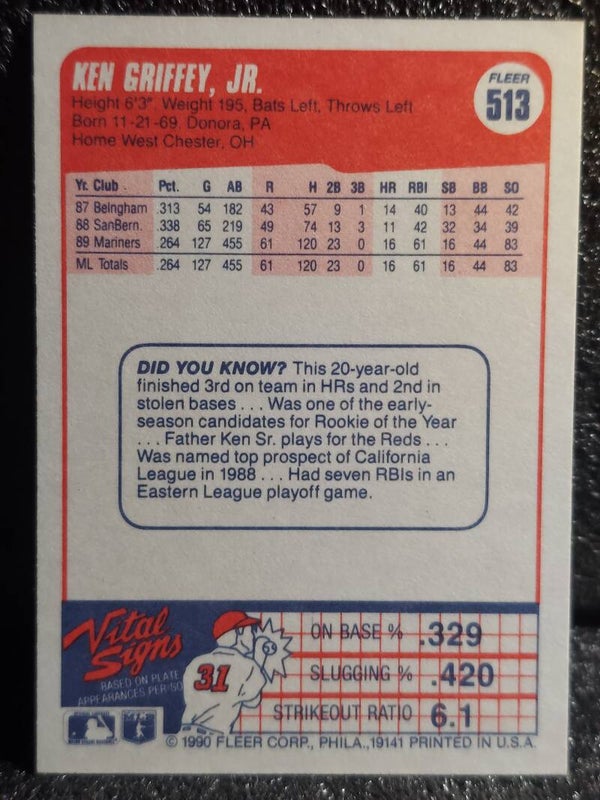 FCC CARD Ken Griffey Jr. 1990 Fleer Baseball Card #513