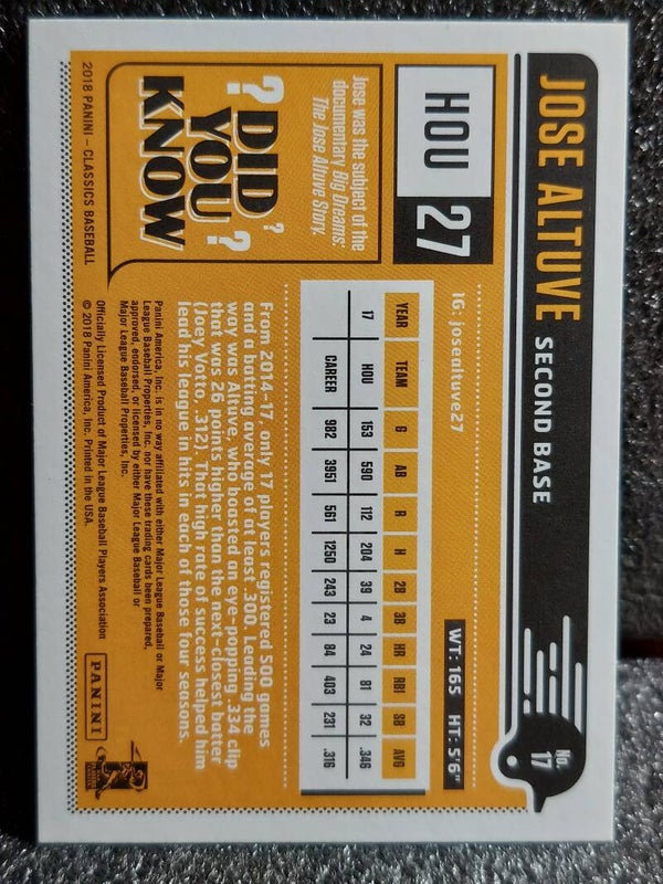 FCC CARD 2018 Panini Chronicles Jose Altuve #17 Houston Astros