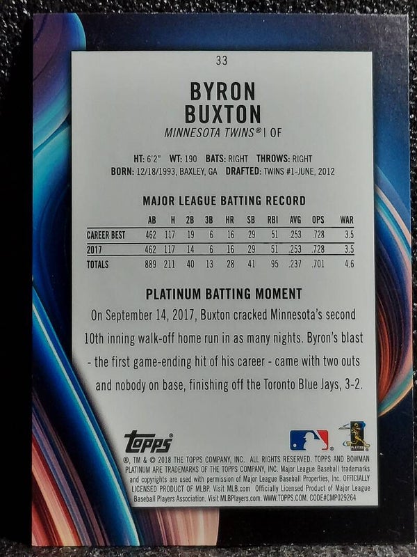 Byron Buxton 2018 Bowman Platinum #33 Minnesota Twins Baseball MLB Card