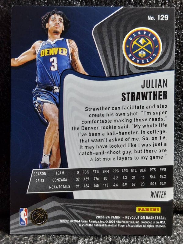 2023-24 Panini Revolution Winter Rookie Card featuring Julian Strawther of the Denver Nuggets