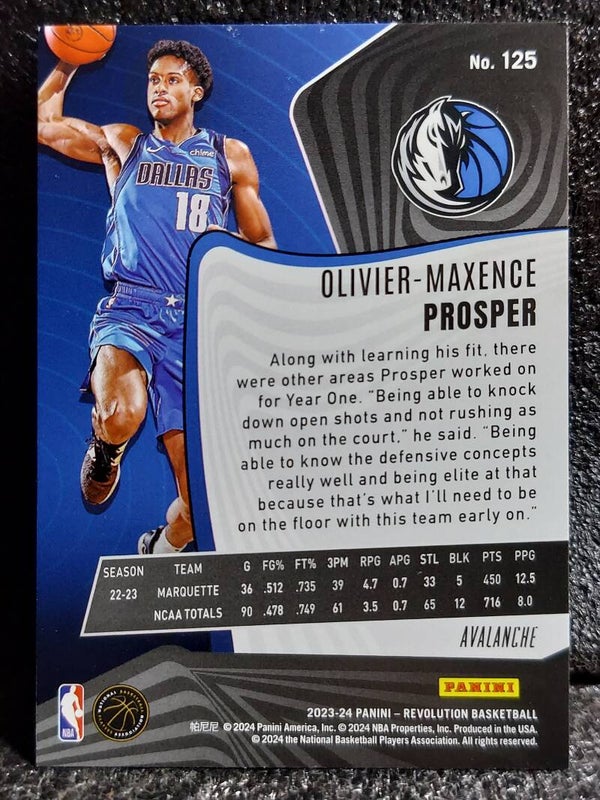 2023-24 Panini Revolution basketball card featuring Olivier-Maxence Prosper of the Dallas Mavericks