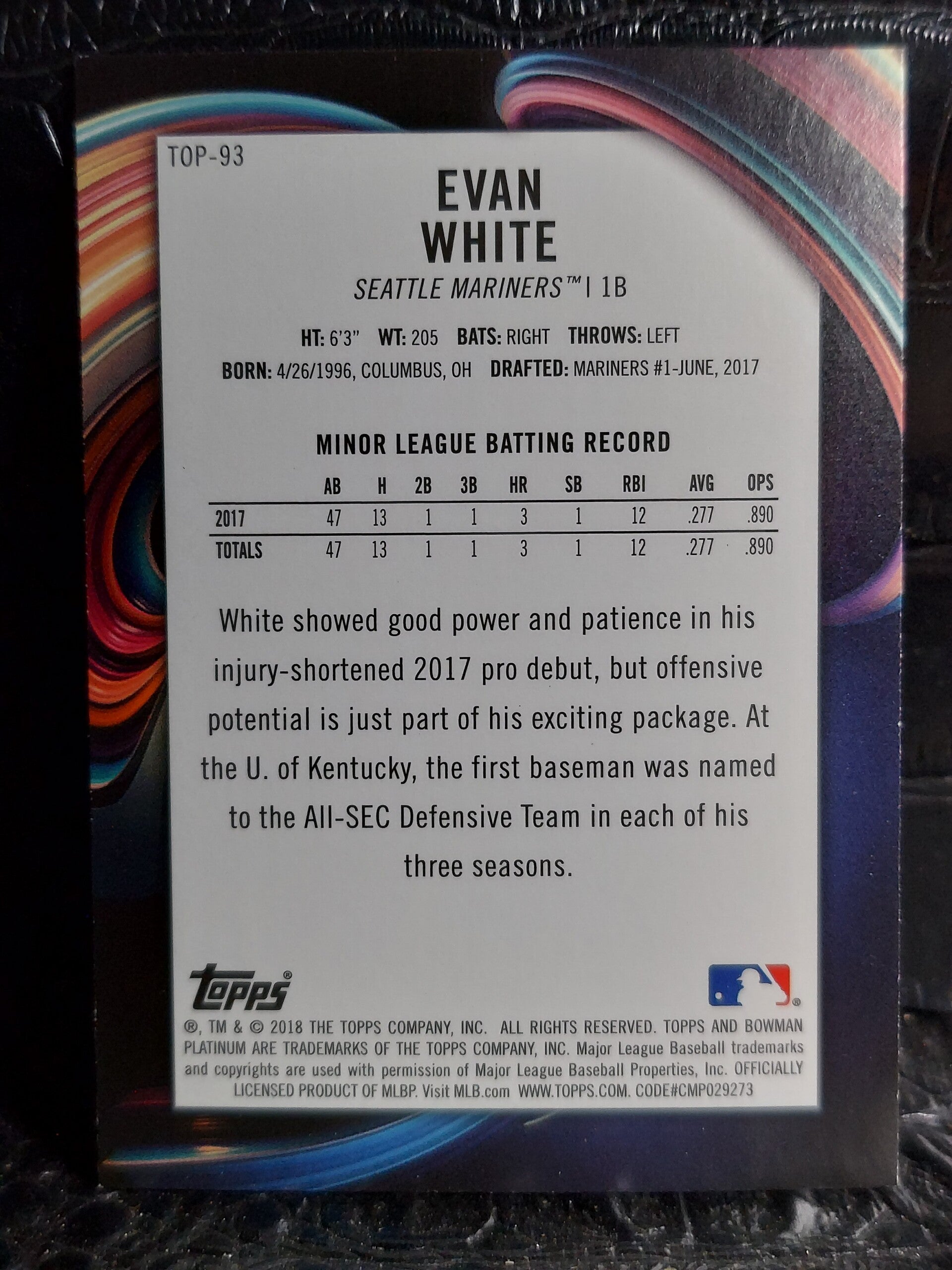 Evan White【RC】2018 Bowman Platinum Mariners Top Prospect