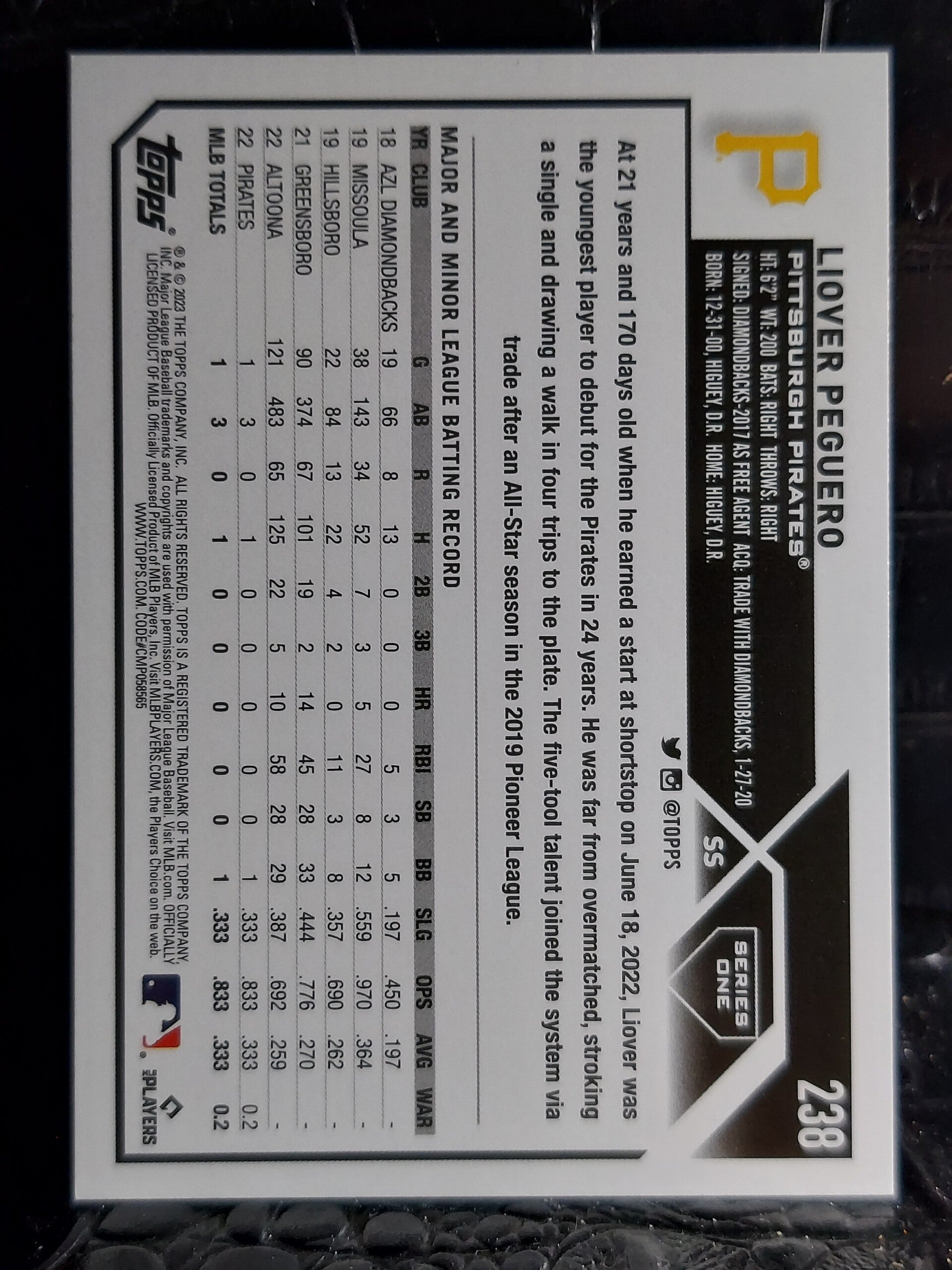 Liover Peguero【RC】2023 Topps Series 1 Rookie Card RC #238 Pittsburgh Pirates