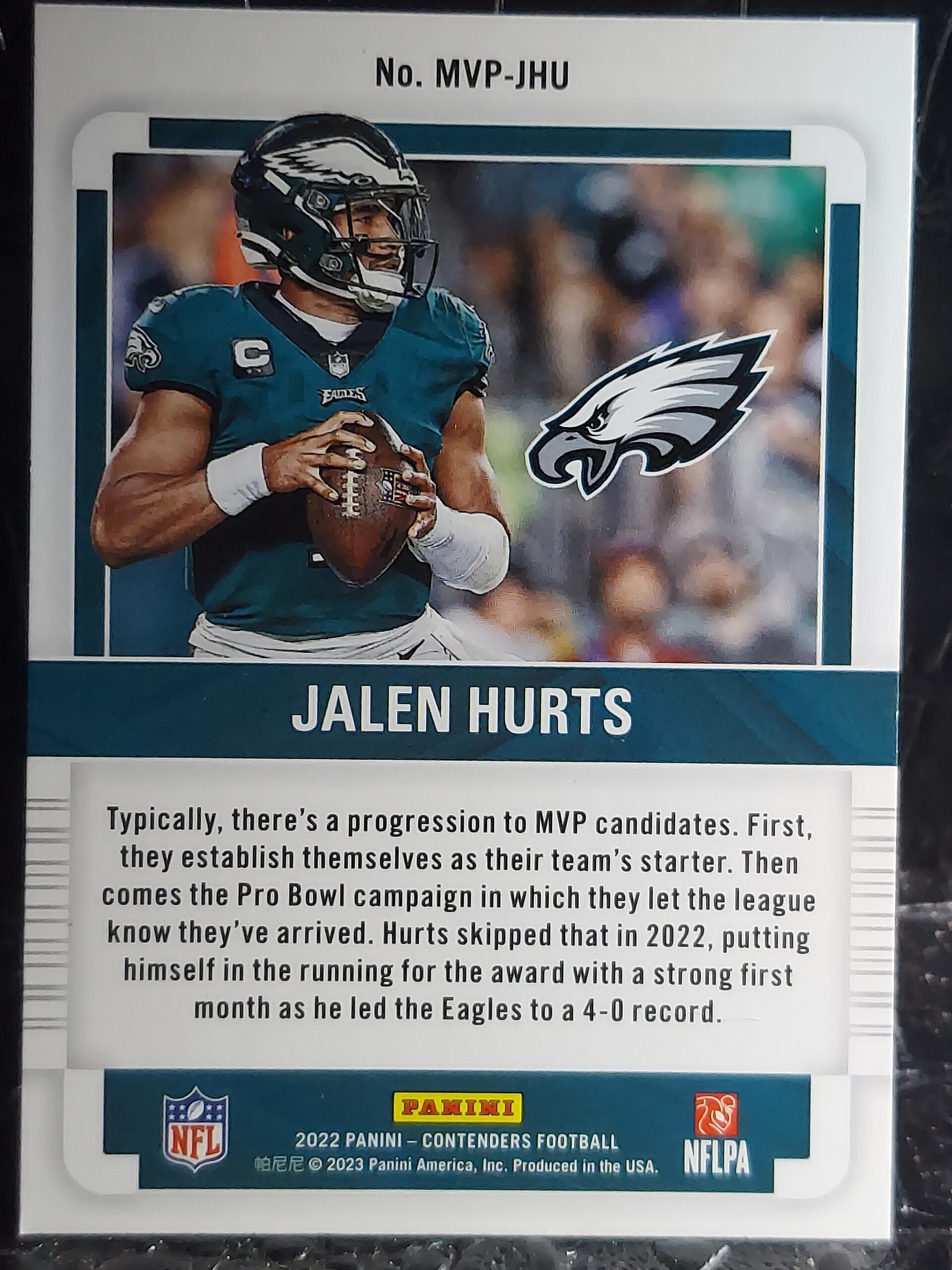 Jalen Hurts 2022 Panini Contenders MVP Contenders #MVP-JHU Philadelphia Eagles