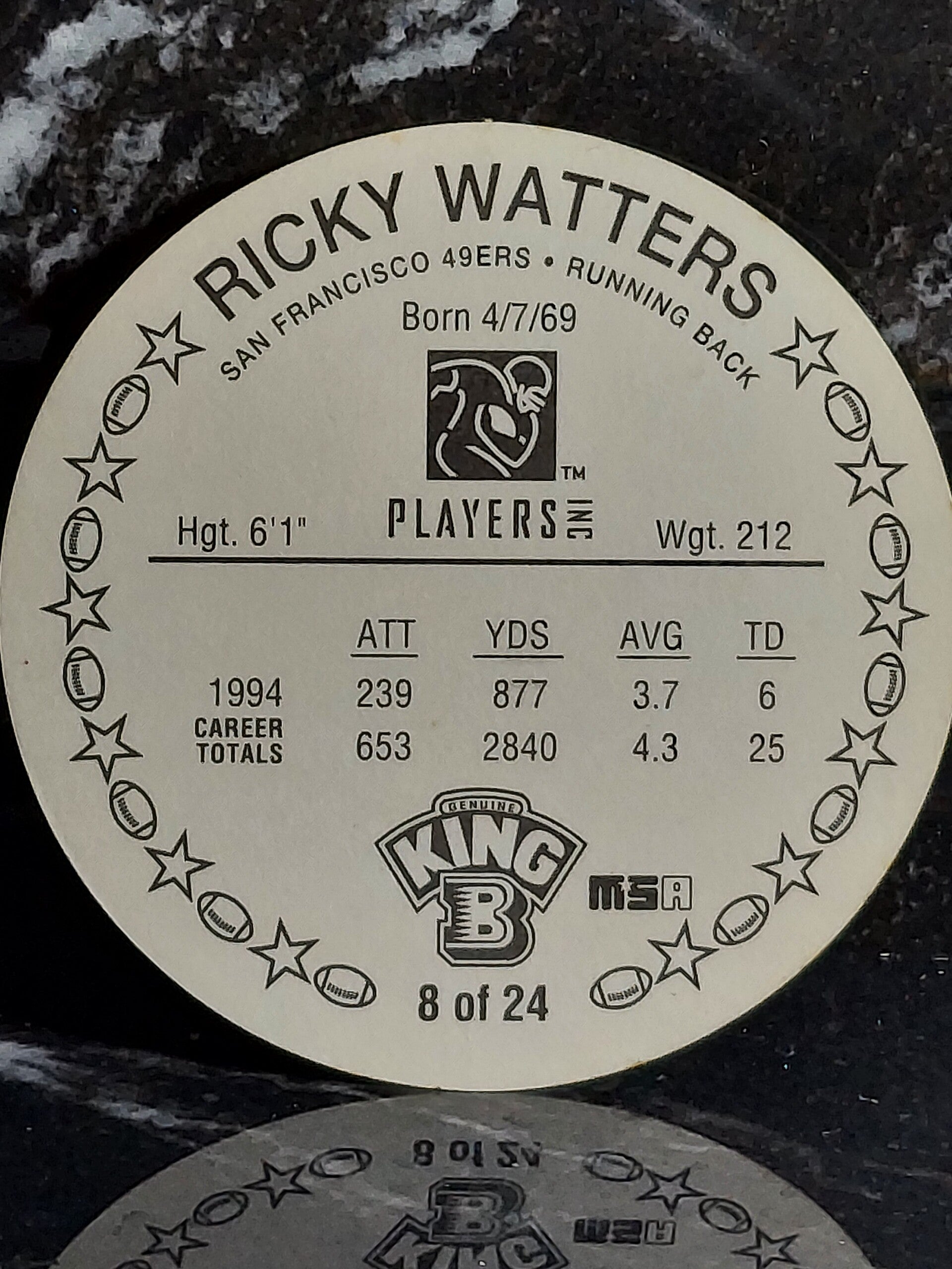 Ricky Watters 1995 King B Football Base Card Disc #8