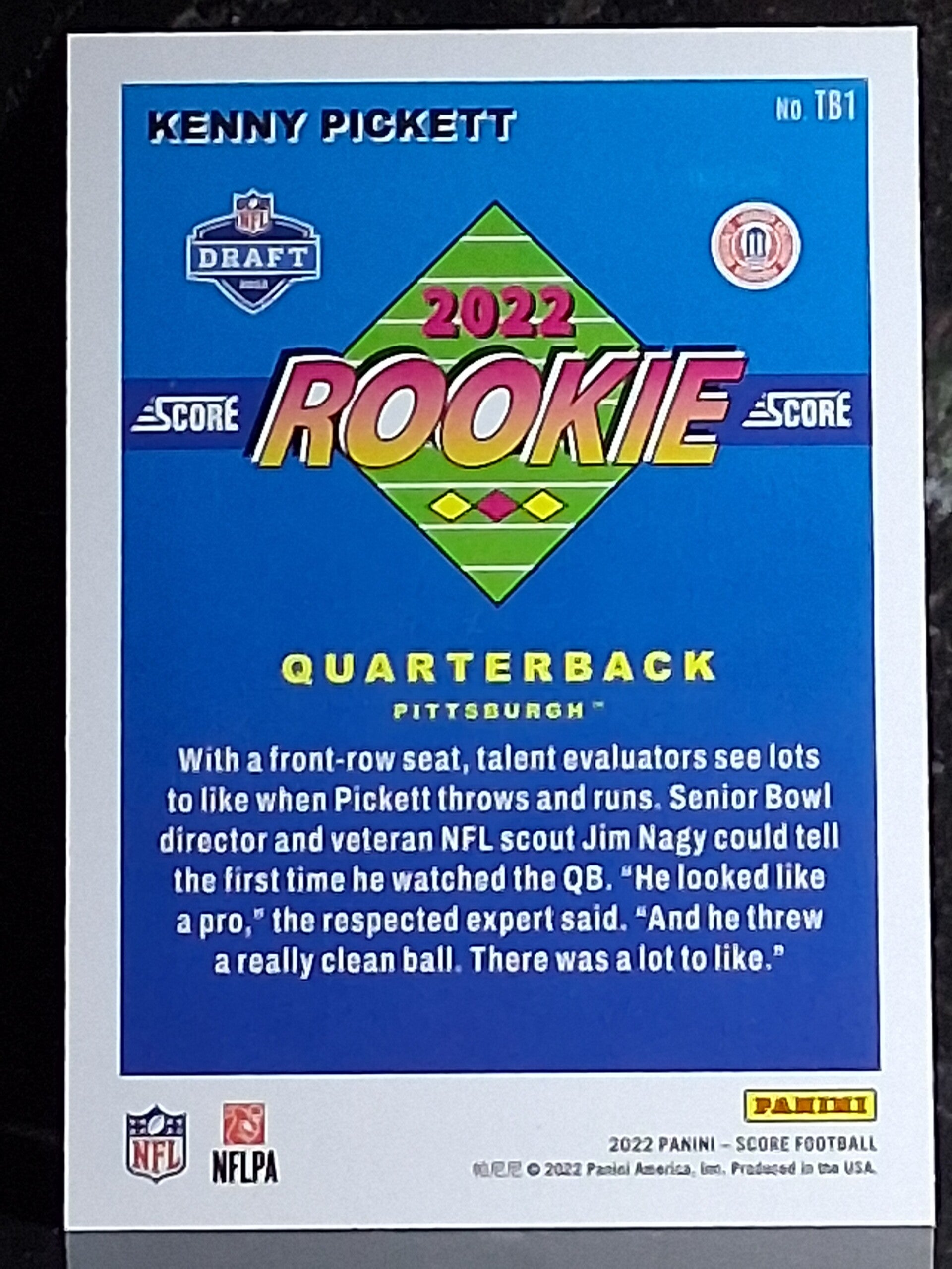 2022 Panini Score Throwback Series #TB1 Kenny Pickett Rookie Card RC Steelers
