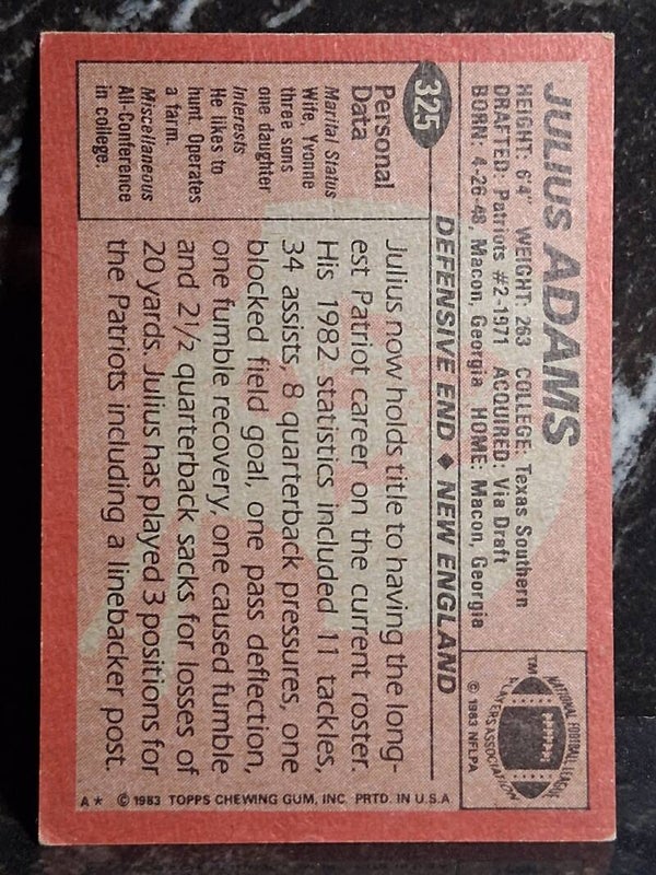 1983 Topps #325 Julius Adams New England Patriots