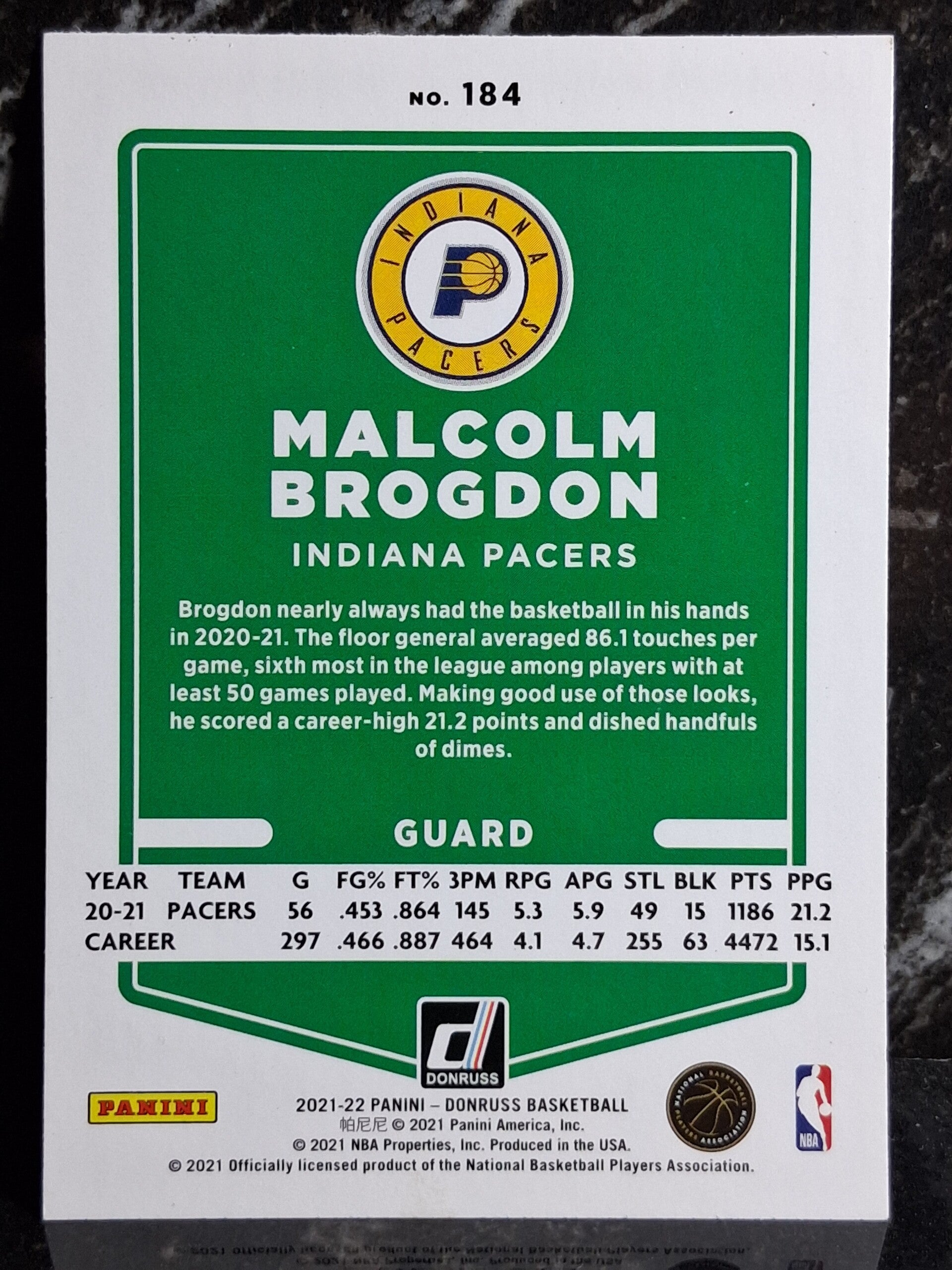 2021-22 Donruss Malcolm Brogdon #184 Indiana Pacers Basketball Card
