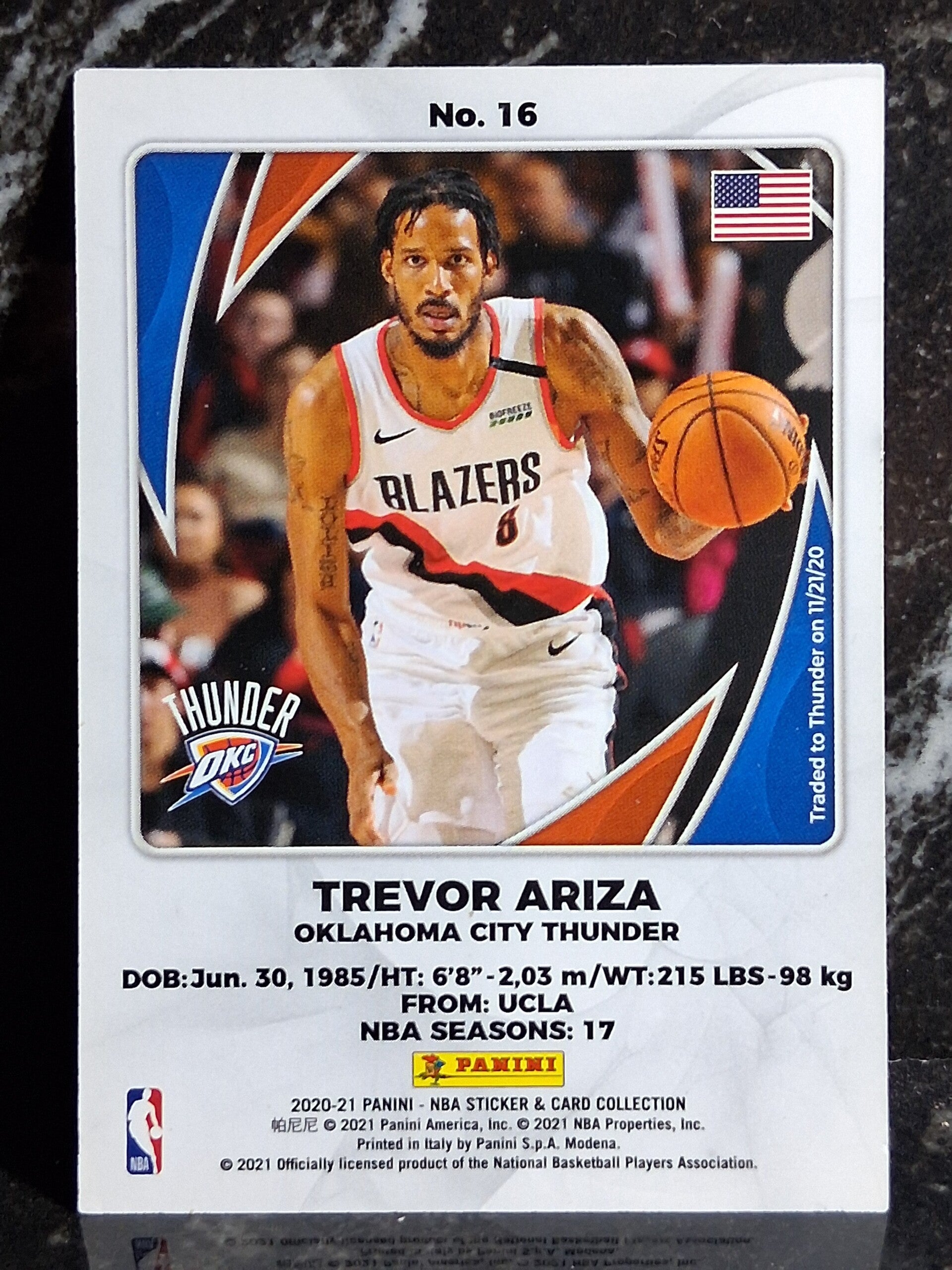 2020-21 Panini NBA Sticker and Card Collection Trevor Ariza #16 Oklahoma City