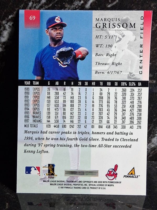 1998 Pinnacle Marquis Grissom #69 Cleveland indians Guardians Baseball Card