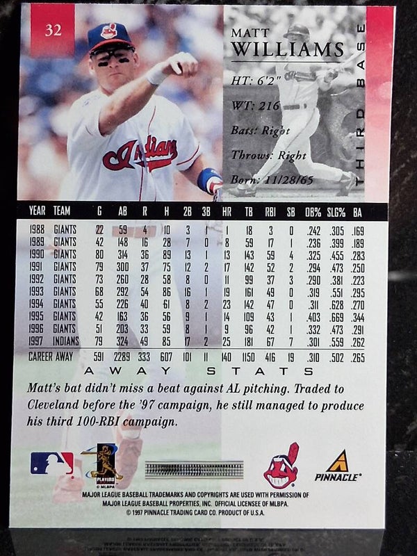 1998 Pinnacle Matt Williams Cleveland Indians #32