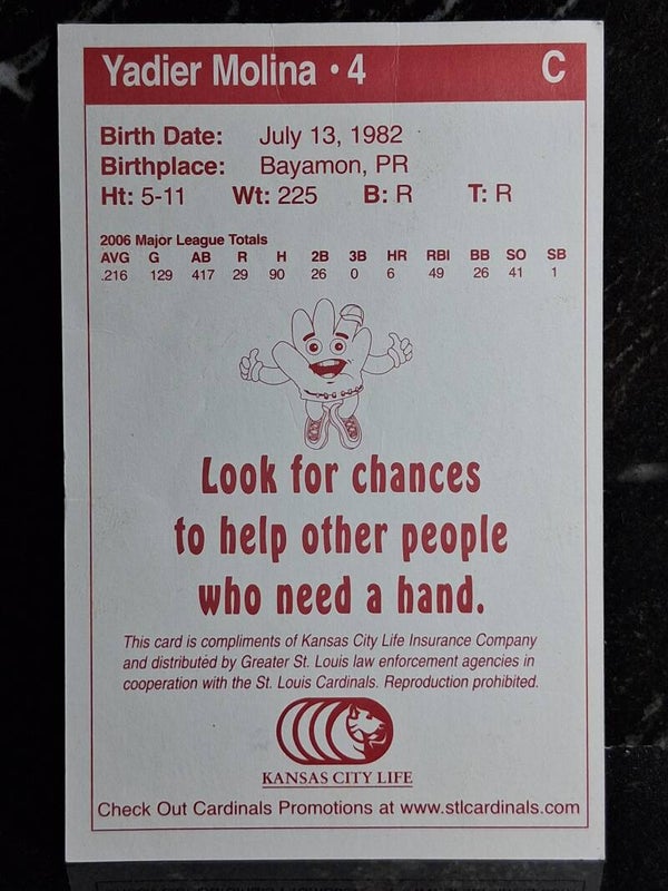 2007 Kansas City Life St. Louis Cardinals Police Give-Away - Yadier Molina