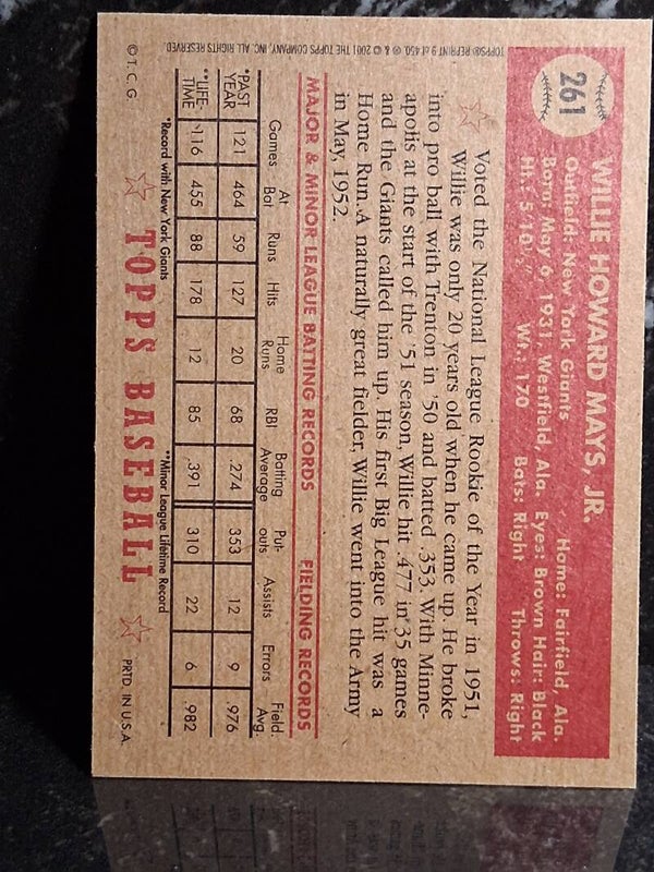 2001 Topps Archives Willie Mays New York Giants #261