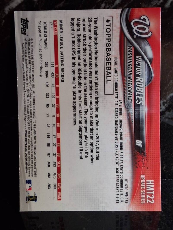 2018 Topps Chrome Baseball RC Victor Robles #HMT22 Update Series Nationals
