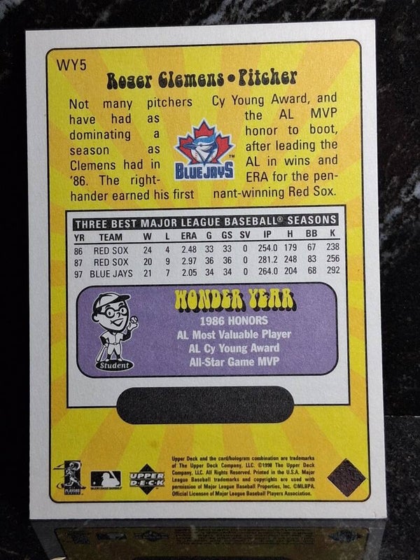 Roger Clemens 1998 Upper Deck Wonder Years